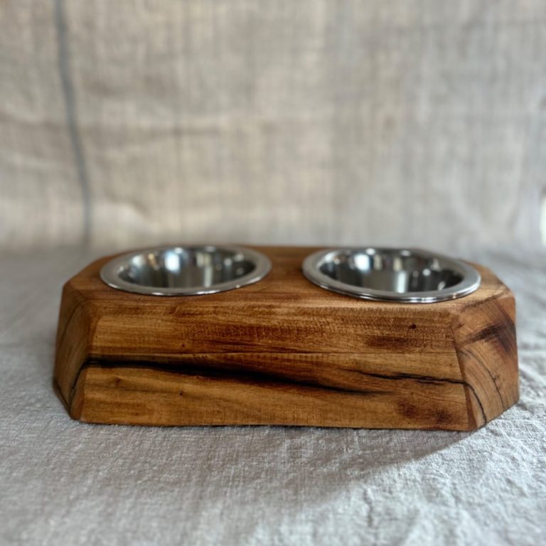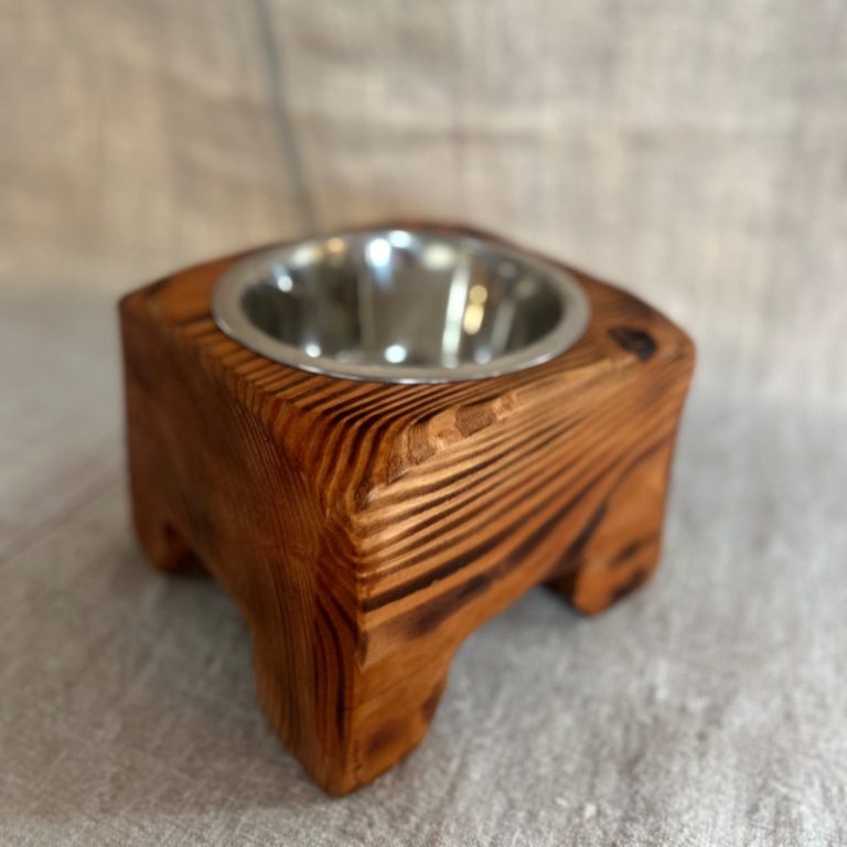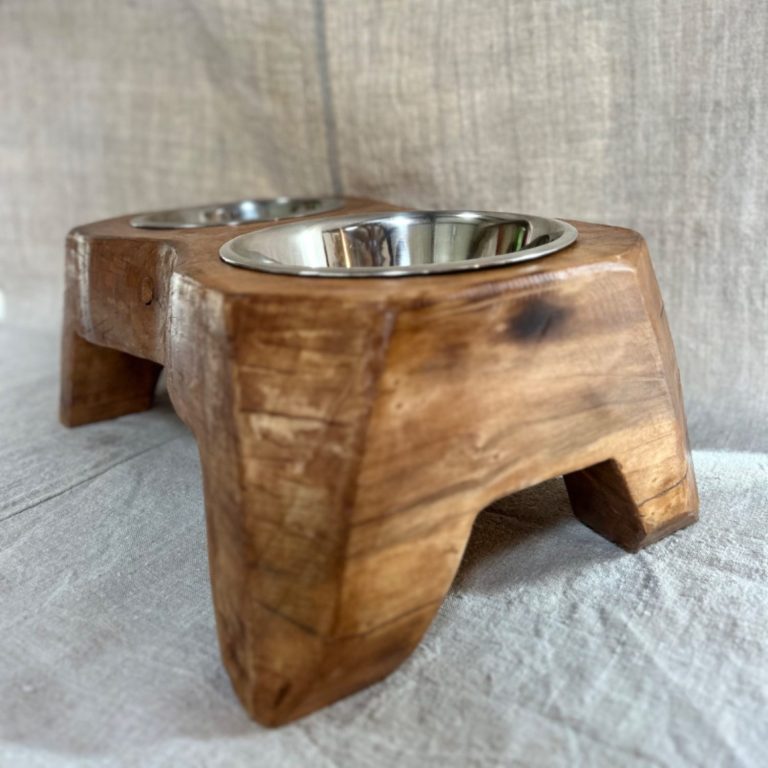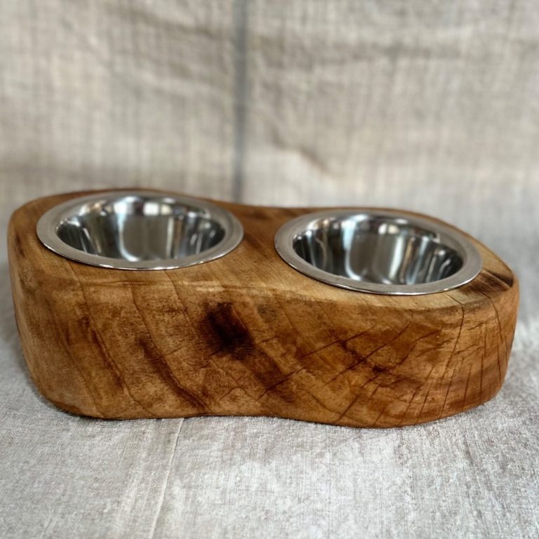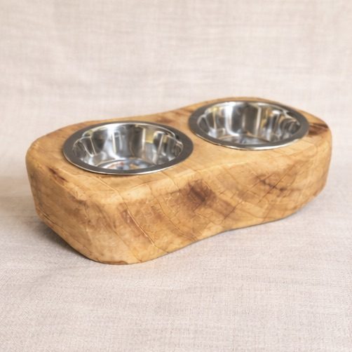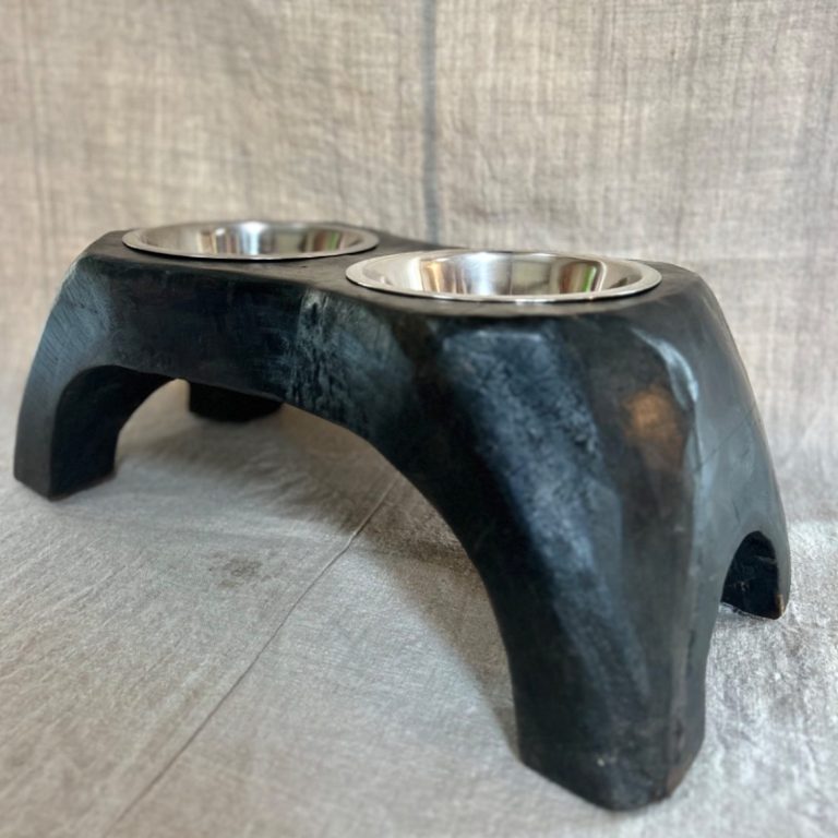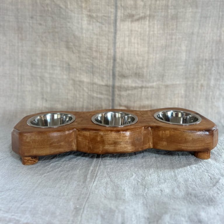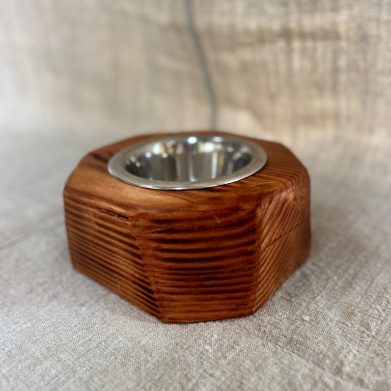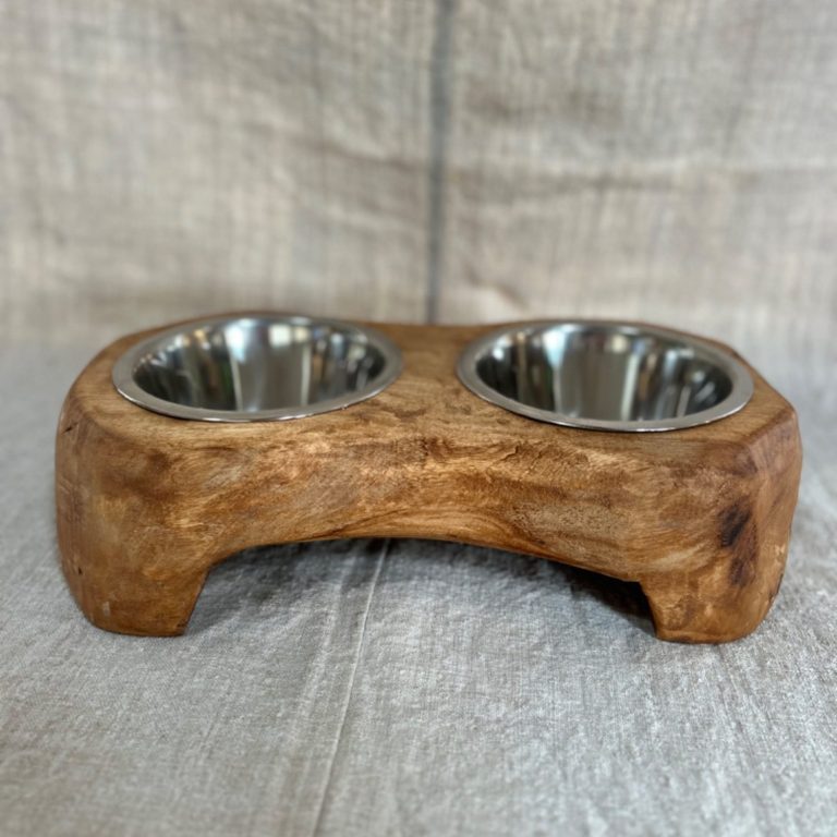Support à gamelle pour chien et/ou chat accompagné d'une gamelle en inox.