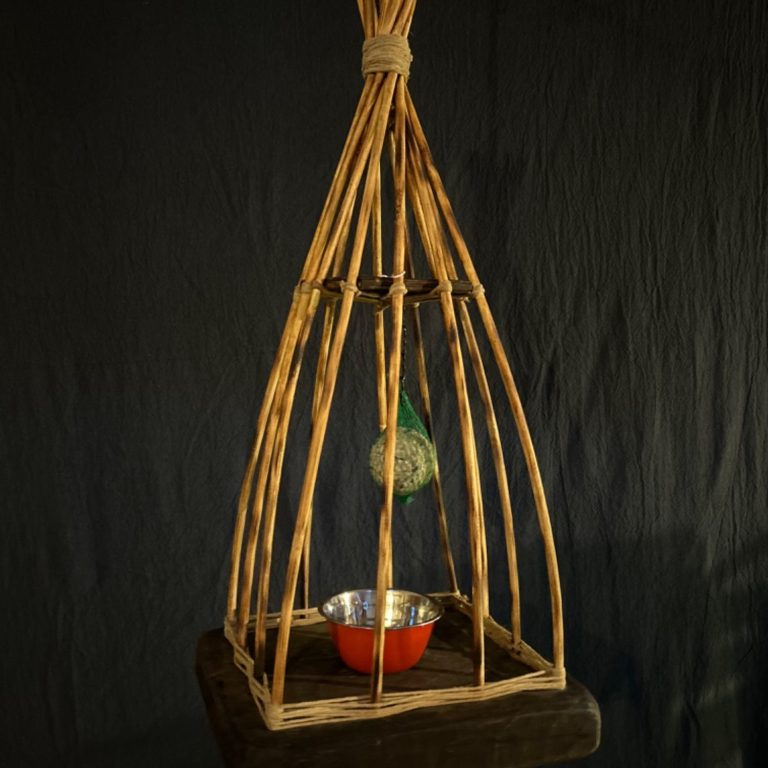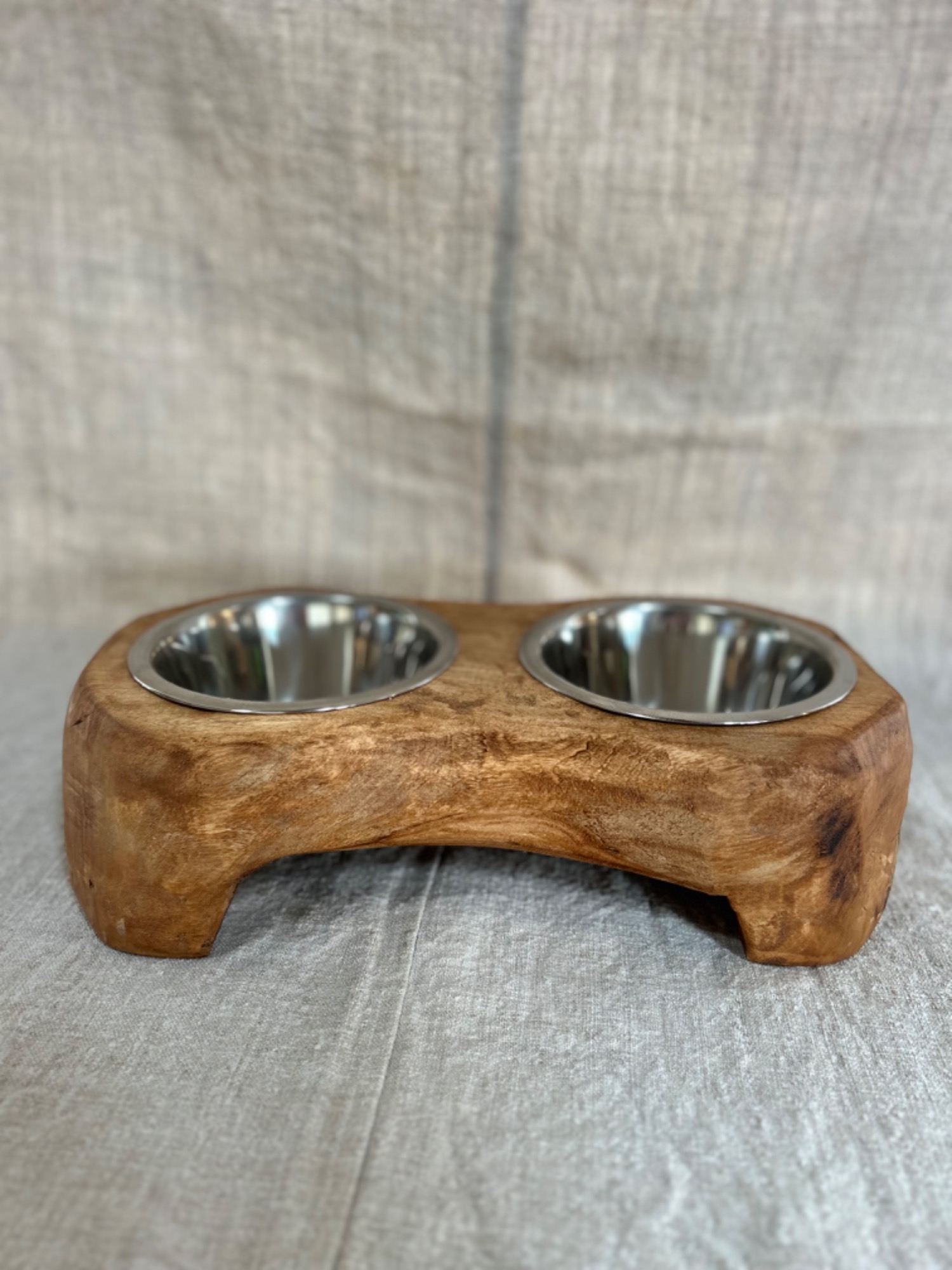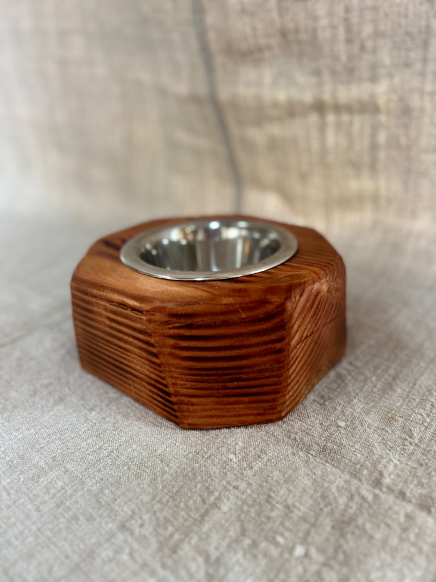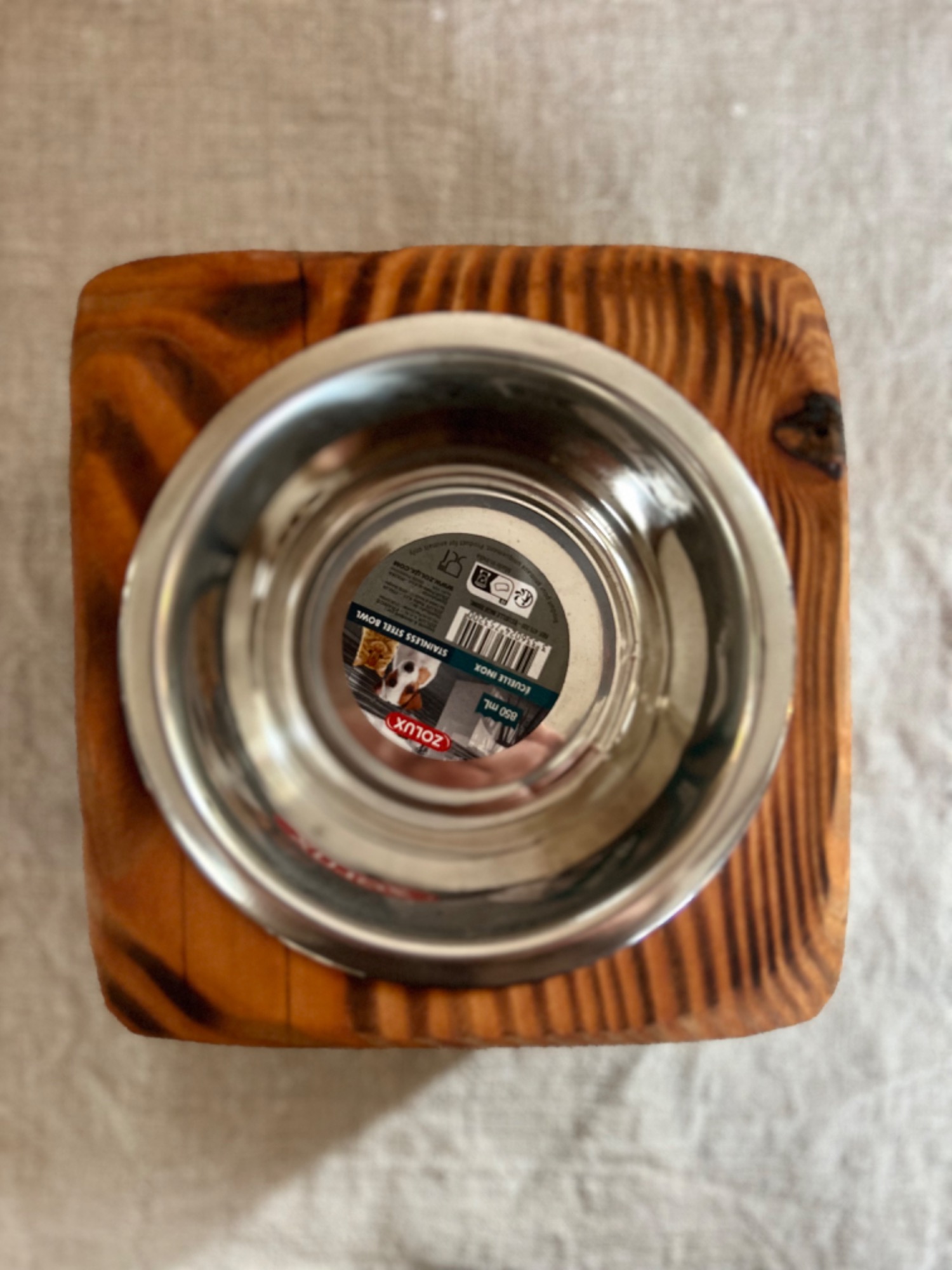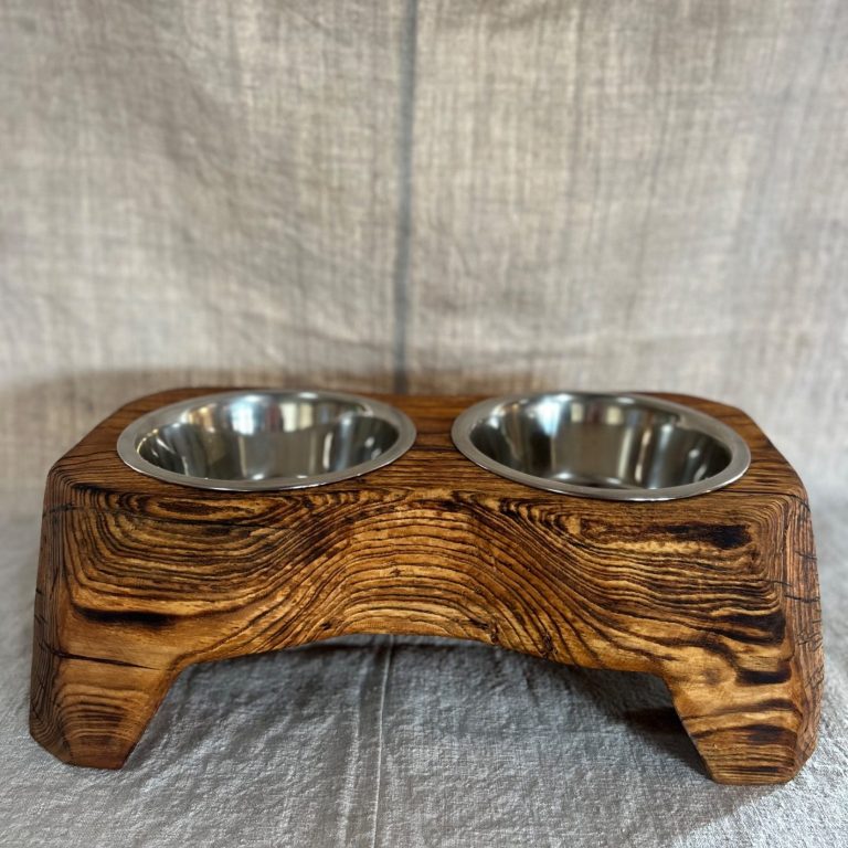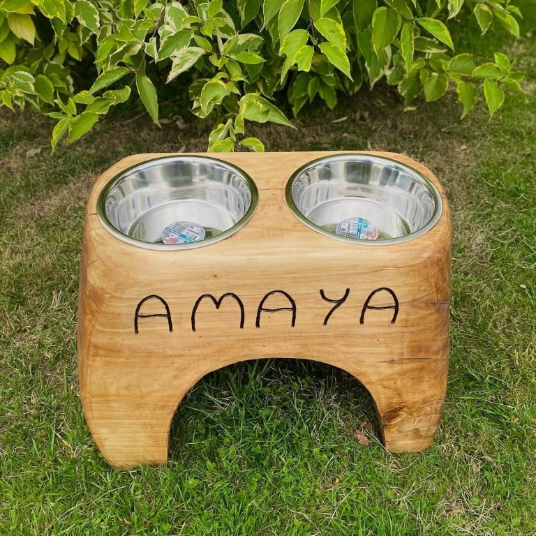 Support à gamelle pour chien et/ou chat accompagné d'une gamelle en inox.